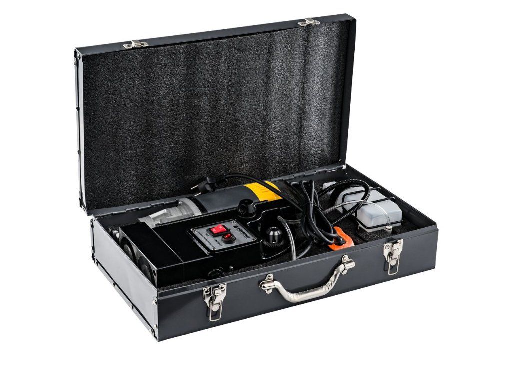 Vrtačka je dodávána s bohatým příslušenstvím včetně transportního kufru pro snadnou manipulaci a skladování.