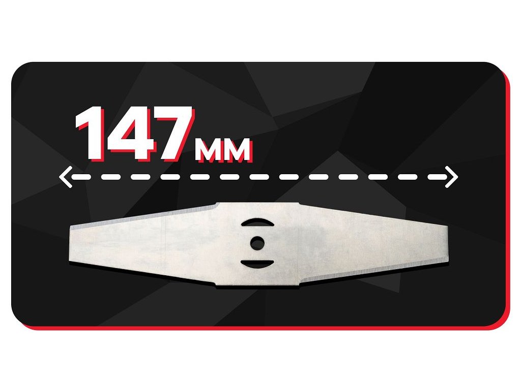 Nůž má pracovní šířku 147 mm 📐, díky čemuž je vhodný pro širokou škálu použití na zahradě 🌿 a zajišťuje rovnoměrné a účinné sekání.