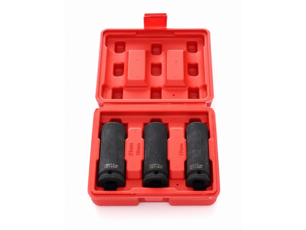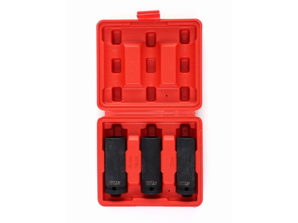 - Obsah sady: Nástavce 1/2": 17 mm, 19 mm, 21 mm