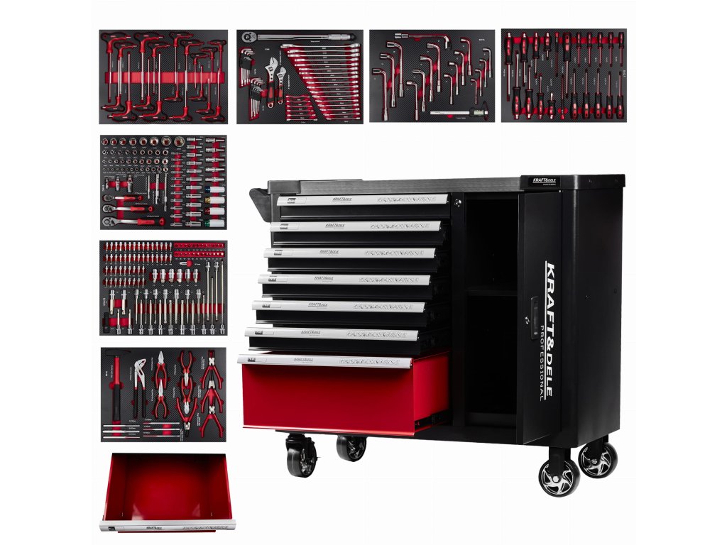 Pokud hledáte dokonalou nářaďovou skříň, pak je Kraft&Dele KD1068 přesně pro vás. Nejenže nabízí 299 kusů kvalitního nářadí, ale i moderní design s uživatelskou přívětivostí. Uzamykatelné zásuvky se postarají o bezpečnost vašeho malého i většího pokladu. Chrom-vanadiová ocel zaručuje odolnost a dlouhou životnost. Už žádné poškození díky pogumovaným nárazníkům.