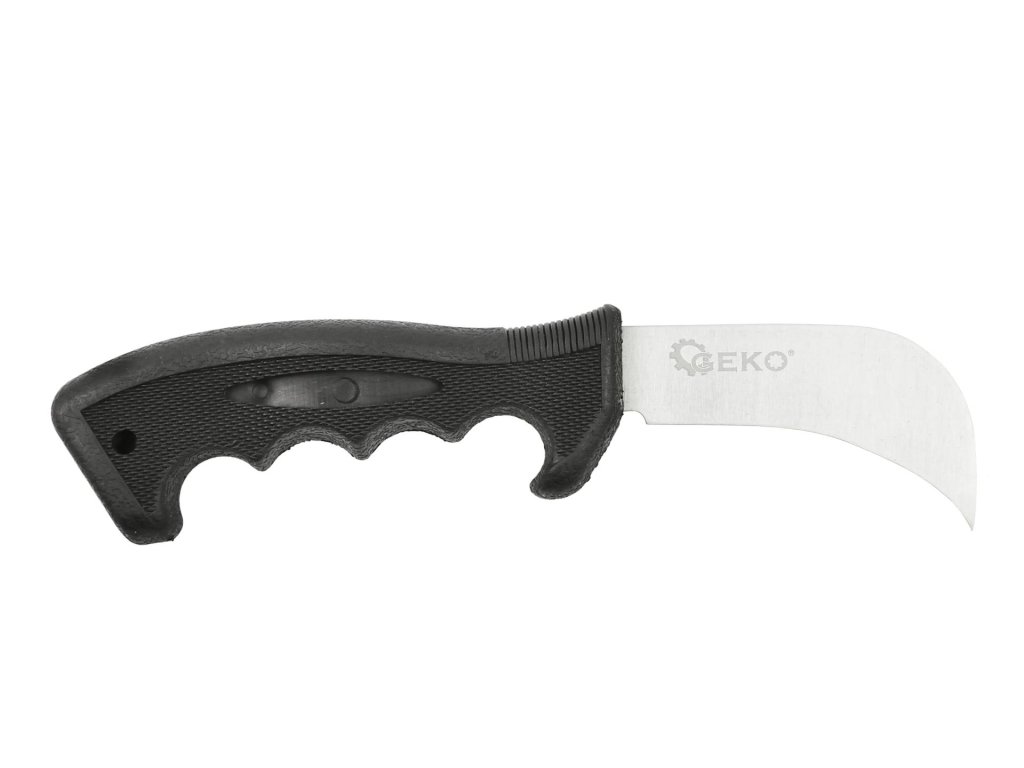 Nůž na řezání lepenky a podlahových krytin. Vyrobeno z nerezové oceli s označením 2Cr13. Speciální srpovitá čepel umožňuje efektivní provádění prací, jako je řezání lepenky nebo podlahových krytin. Jistý úchop nástroje zajišťuje profilovaná rukojeť vyrobená z odolného a odolného plastu.