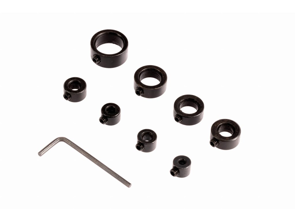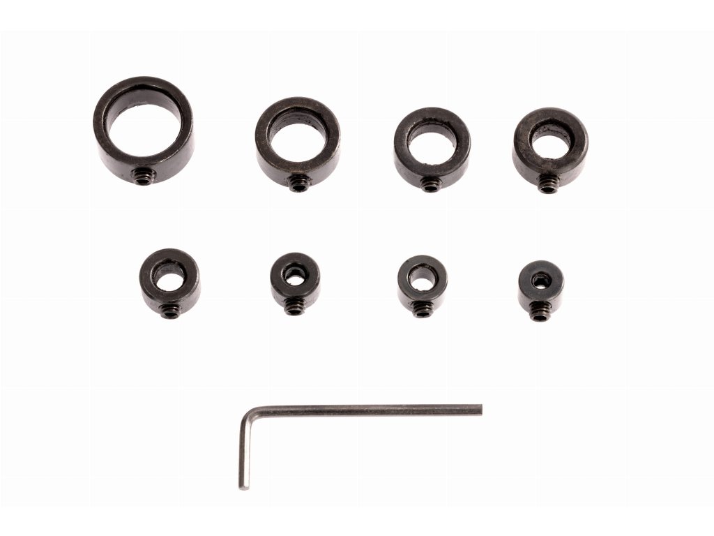 - 8 dorazů pro vrtáky: 3 mm, 4 mm, 5 mm, 6 mm, 8 mm, 10 mm, 12 mm, 16 mm