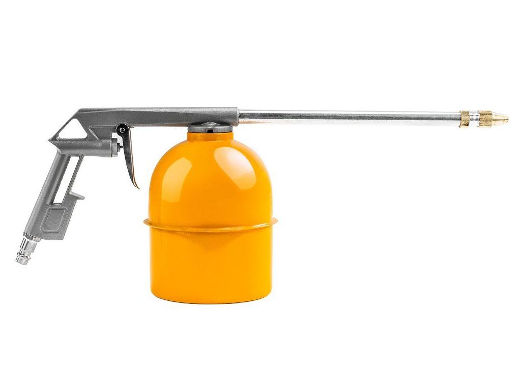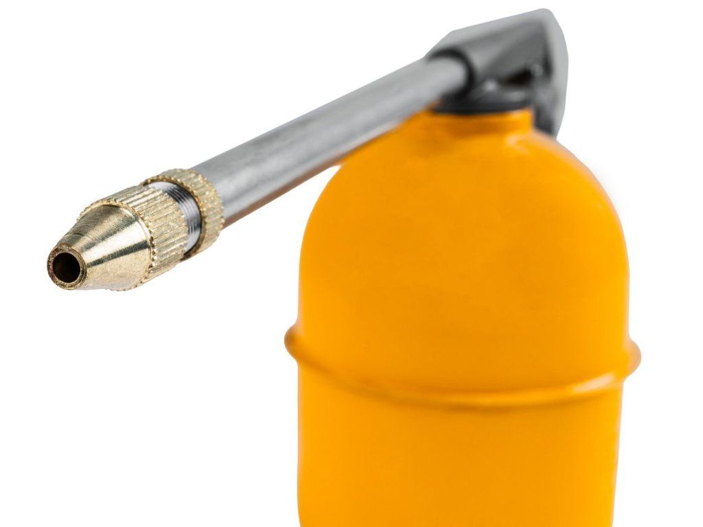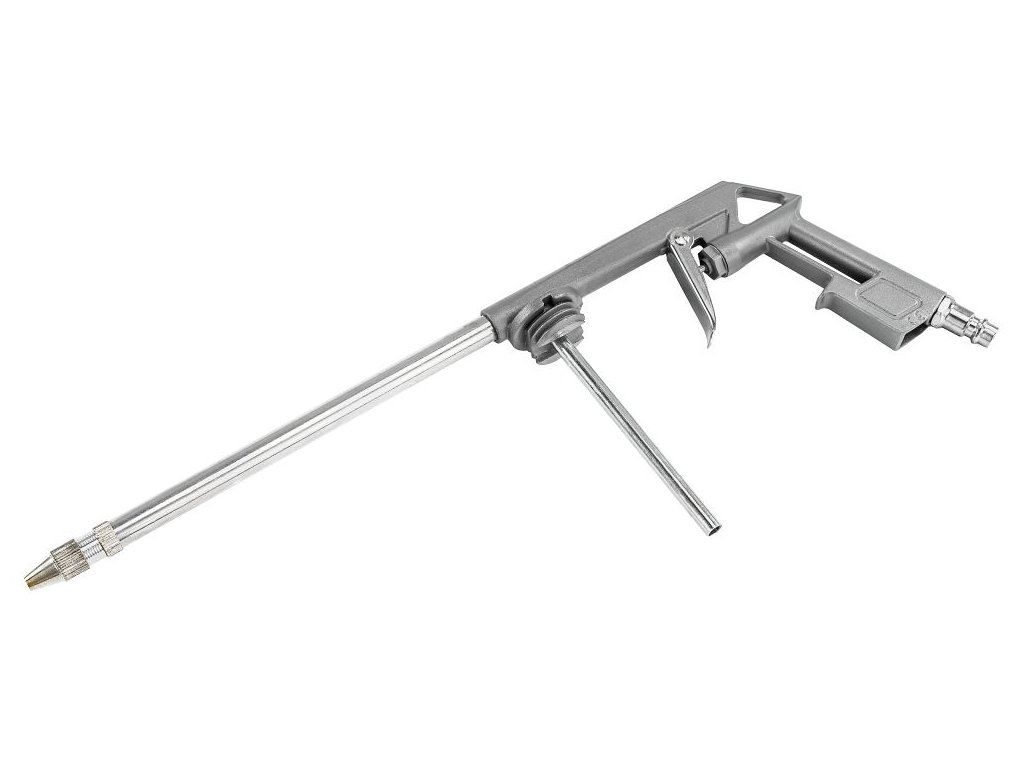 Dlouhá kovová tryska umožňuje snadné dosažení i do špatně přístupných míst, což oceníte například při údržbě strojů, vozidel nebo různých mechanických součástí.