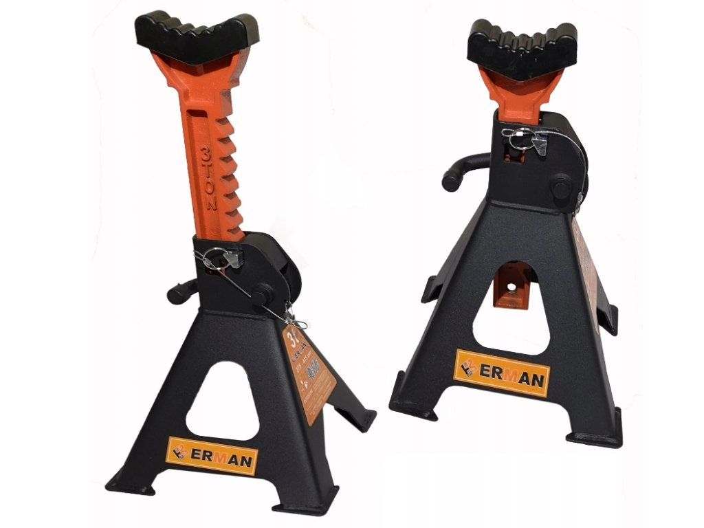 sada dvou kvalitních podpěr,jedna se o ové zboží s dvouletou zárukou, Stojany jsou velmi pevné z tlustého ocelového plechu, s rohatkovým mechanismem, který umožňuje velmi přesné nastavení výšky na mnoha úrovních.
