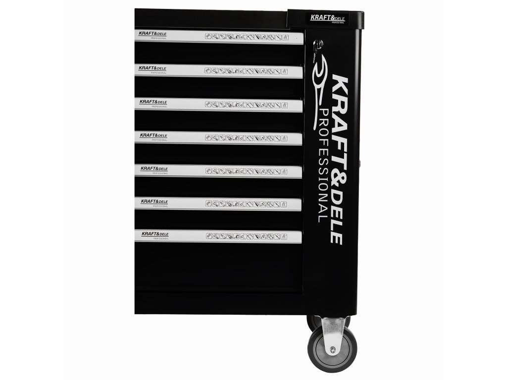 S naší dílenskou skříňkou od Kraft&Dele se vaše práce stane čistou radostí. Představte si: 7 bezpečných šuplíků na kuličkových ložiscích, každý se samostatným zámkem. Dále možnost montáže dalšího vybavení na boky, čímž si usnadníte práci. Skříňka stojí pevně díky otočným kolečkům s brzdou a odolá i chemickým vlivům. To vše za tu nejlepší cenu přímo od výrobce.
