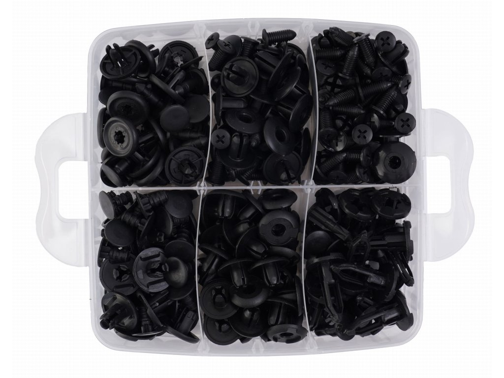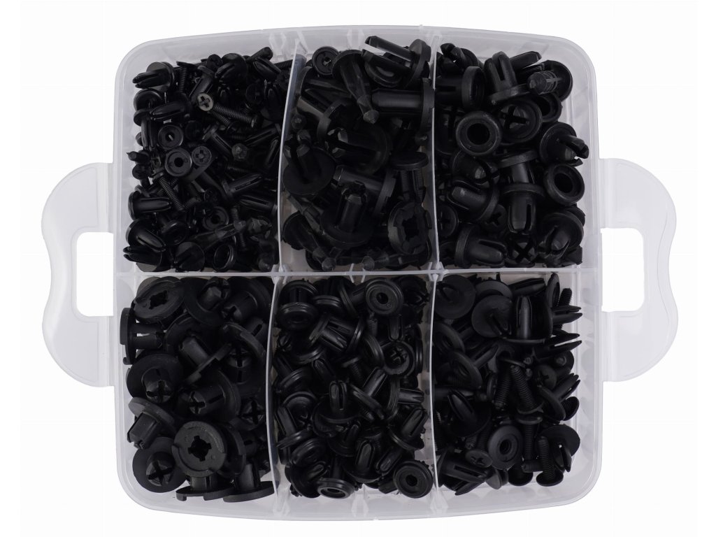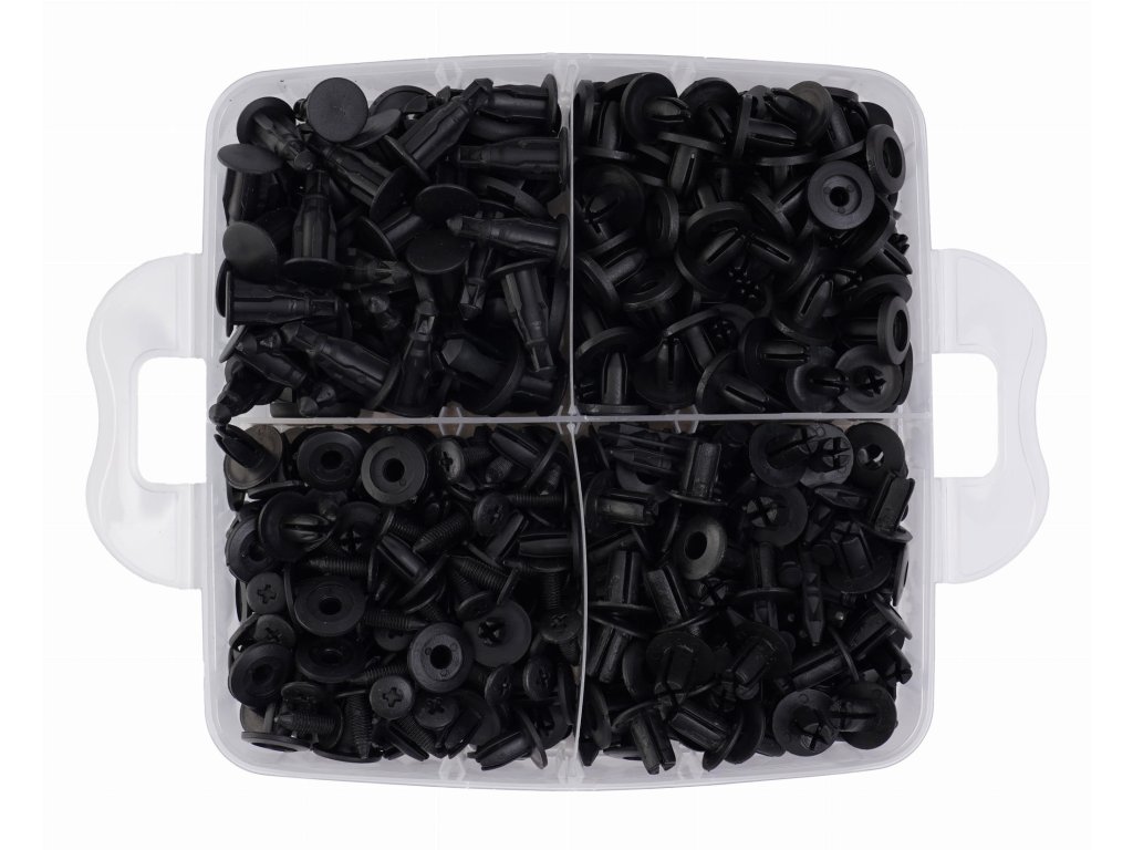 Sada 630 ks sponek, kolíků, klipů na čalounění + vytahovač a stahováky KD10612