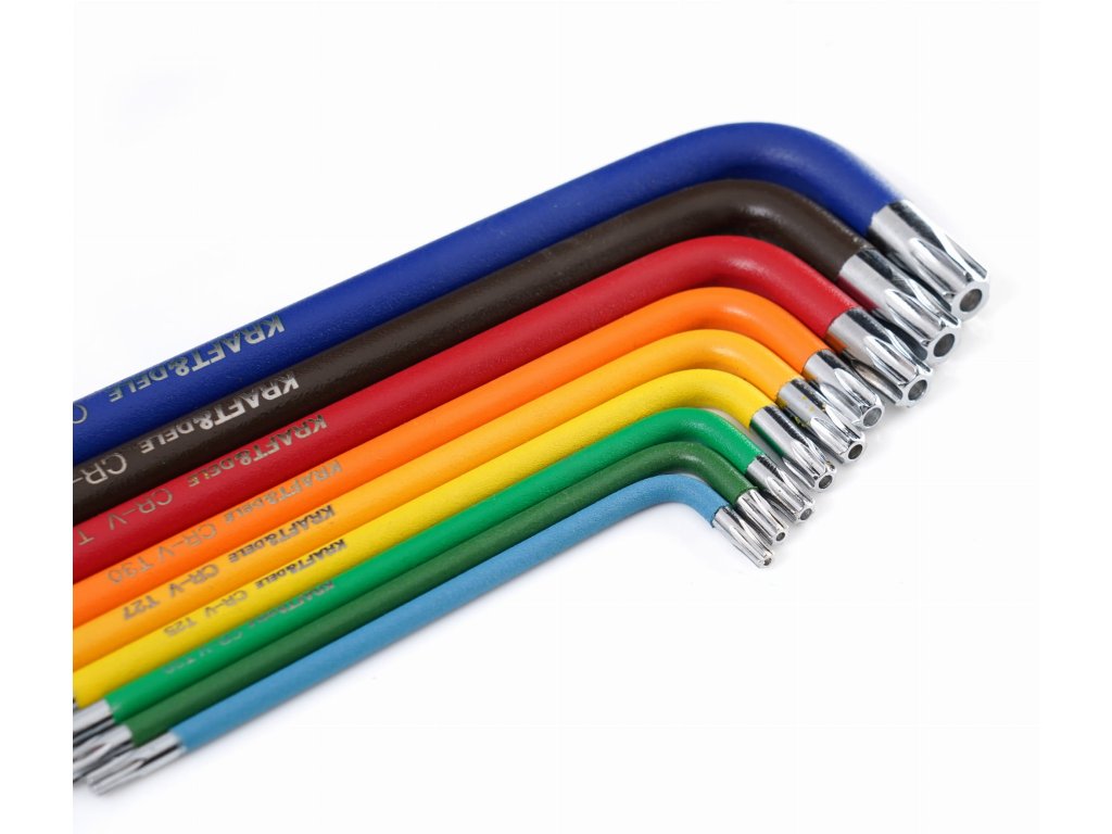 Pokud hledáte spolehlivou sadu nářadí, barevné TORX klíče Kraft&Dele KD11930 jsou trefou do černého! Tato sada zahrnuje 9 klíčů z prvotřídní CRV oceli, což znamená, že jsou extrémně trvanlivé. Barevné označení každého klíče vám pomůže s rychlou identifikací, což je ideální pro každého, kdo pracuje na složitých projektech. Navíc antikorozní povlak chrání klíče před rzí.