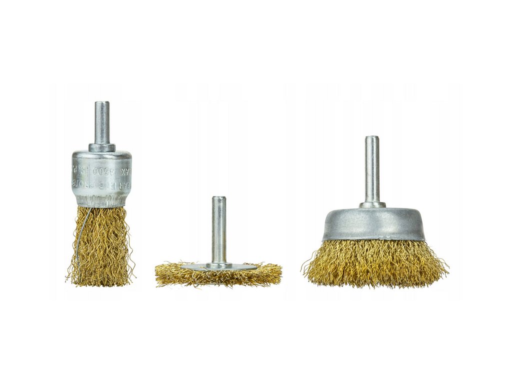 - Sada rotačních mosazných drátěných kartáčů 3dílná Měkké mosazné drátěné kartáče pro čištění, leštění a přípravu povrchu