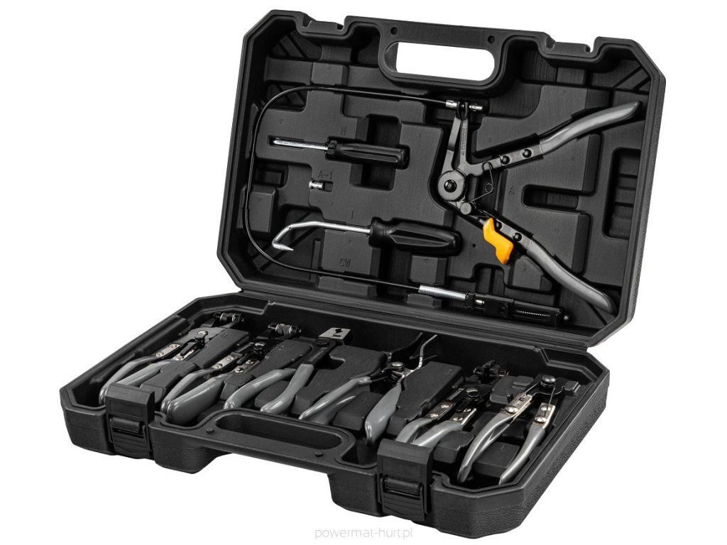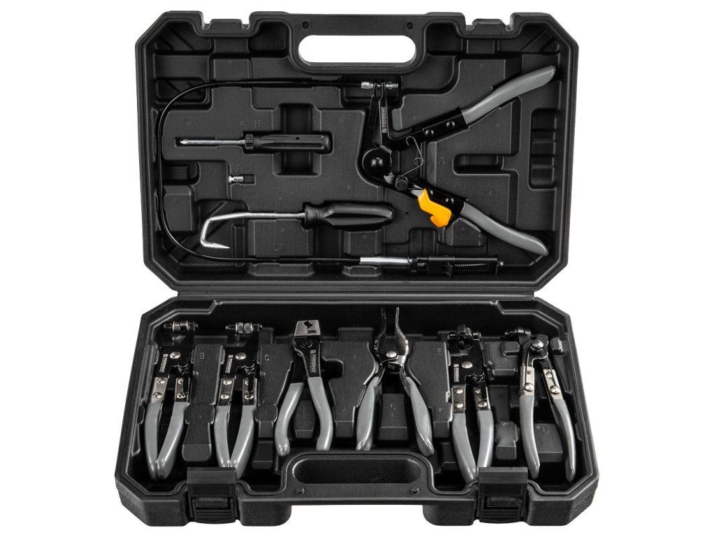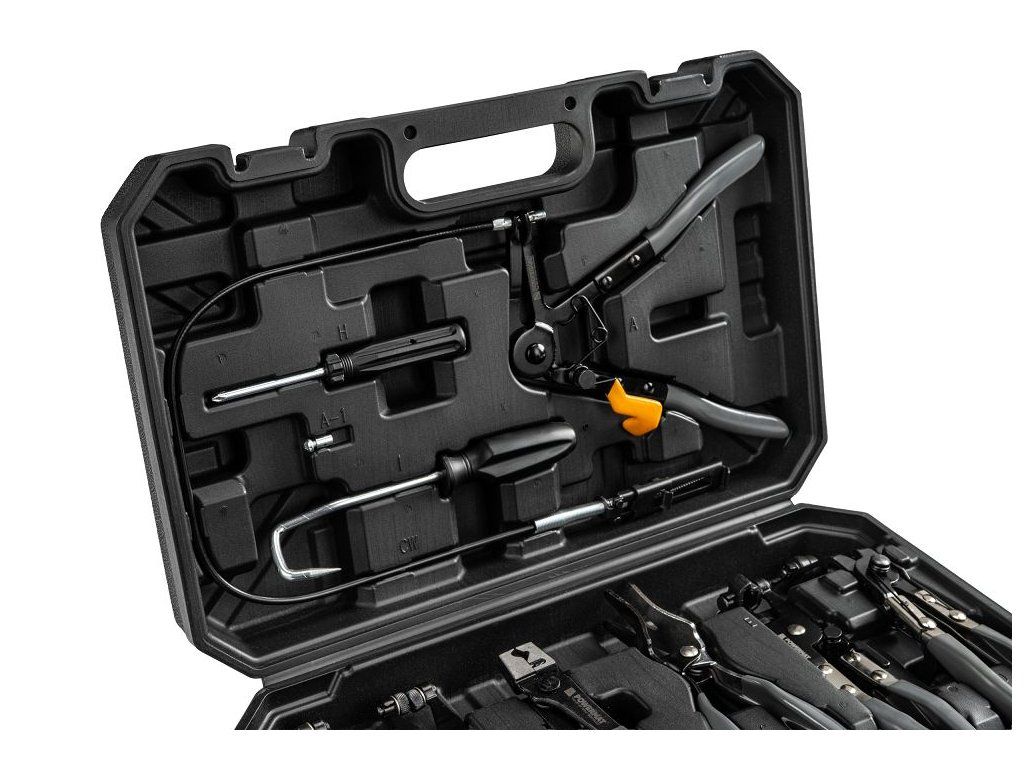 Sada je ideální pro práci v systémech chlazení, palivových a podtlakových systémech automobilů. Umožňuje efektivní manipulaci se svorkami různých typů.