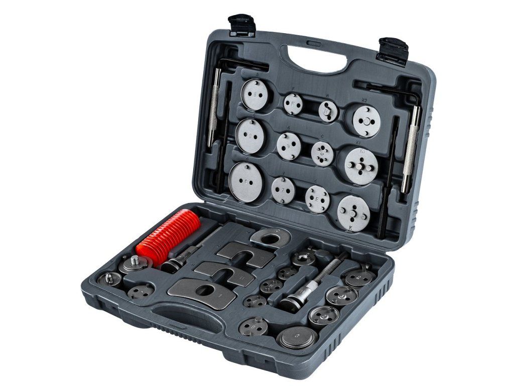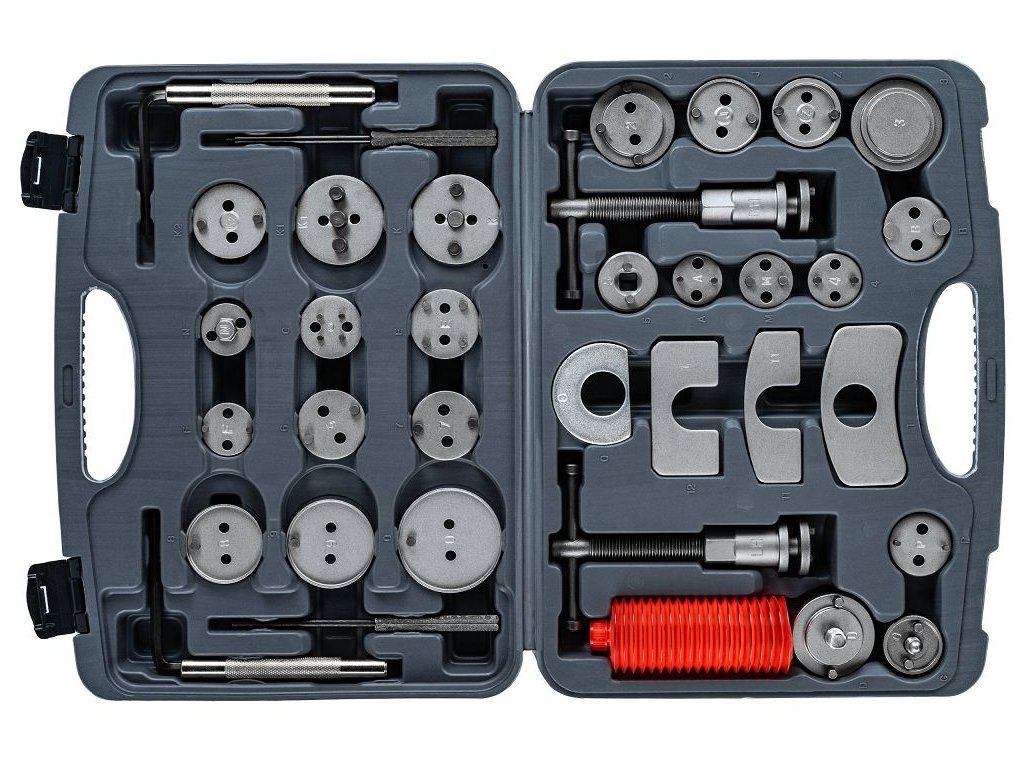Praktické provedení pro spolehlivou práci v dílně i domácnosti. Tato sada je ideální volbou pro každého, kdo potřebuje efektivně a bezpečně servisovat brzdové systémy. Díky 35 dílům, včetně adaptérů a prasek, je vhodná pro širokou škálu modelů aut.