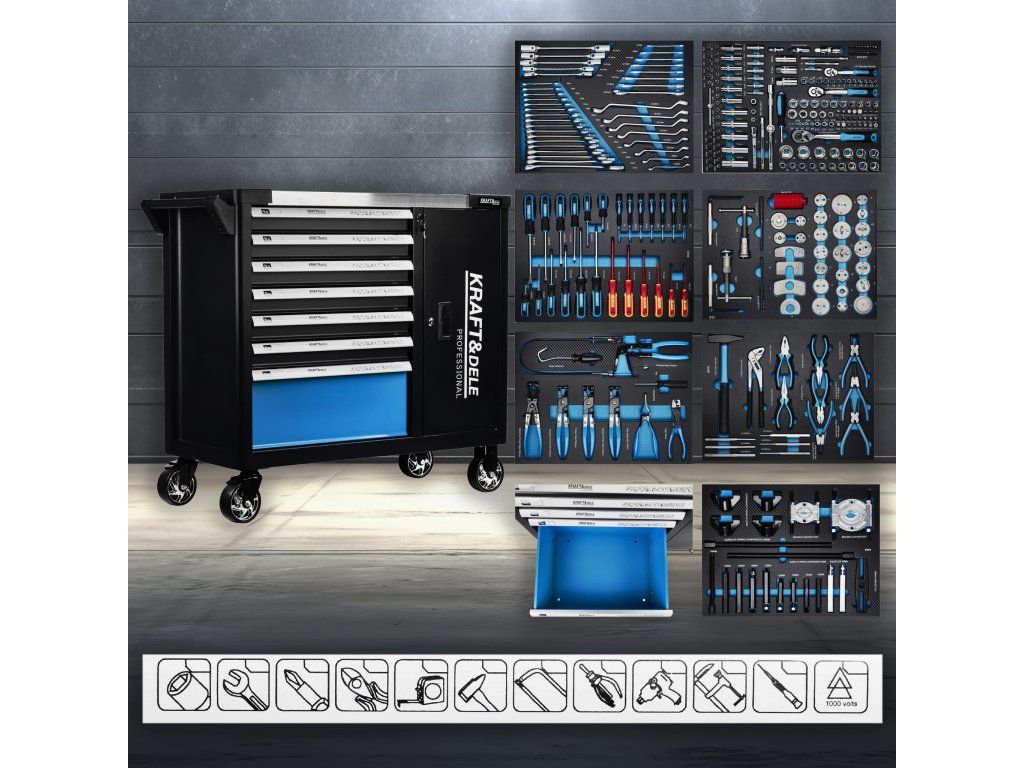 Jakou kapacitu má skříň KD1069?Skříň pojme 309 jednotek nářadí, což stačí pro kompletní profesionální vybavení.