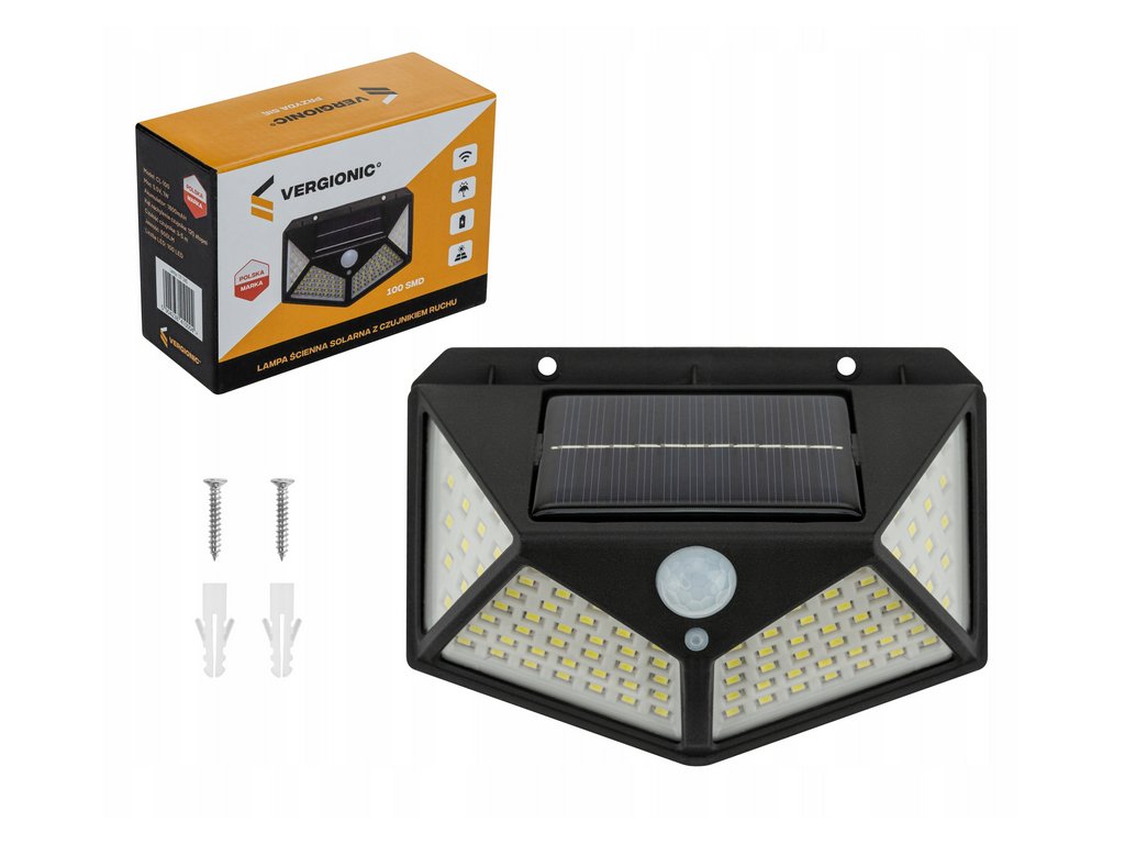 Solární nástěnné LED svítidlo s čidly VERGIONIC.