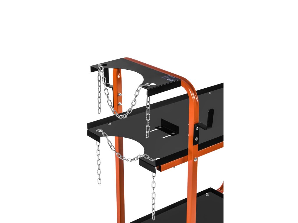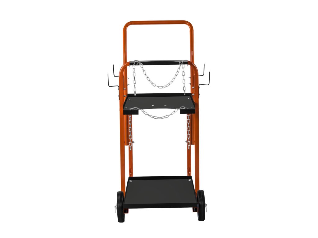 - Funkční design - dvě prostorné police, polička na láhev a stabilizační řetězy pro bezpečné uchycení svářecích lahví.