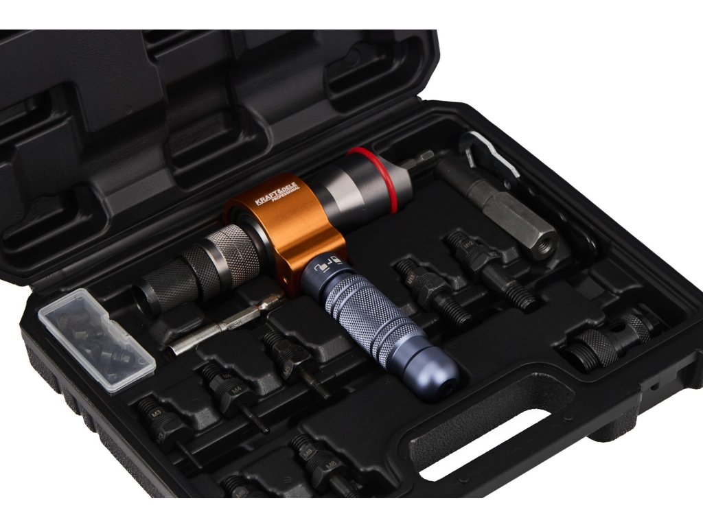 Rozšiřte možnosti své práce s robustním adaptérem a nýtovacím nástavcem 3v1 KD5470 od Kraft&Dele. Tento nástroj z chrom-molybdenové oceli je nejen odolný, ale i korozivzdorný. Pracujte s materiály jako nerezová ocel, ocel a hliník. Obsah balení zahrnuje: