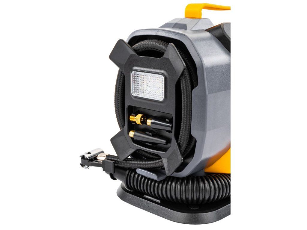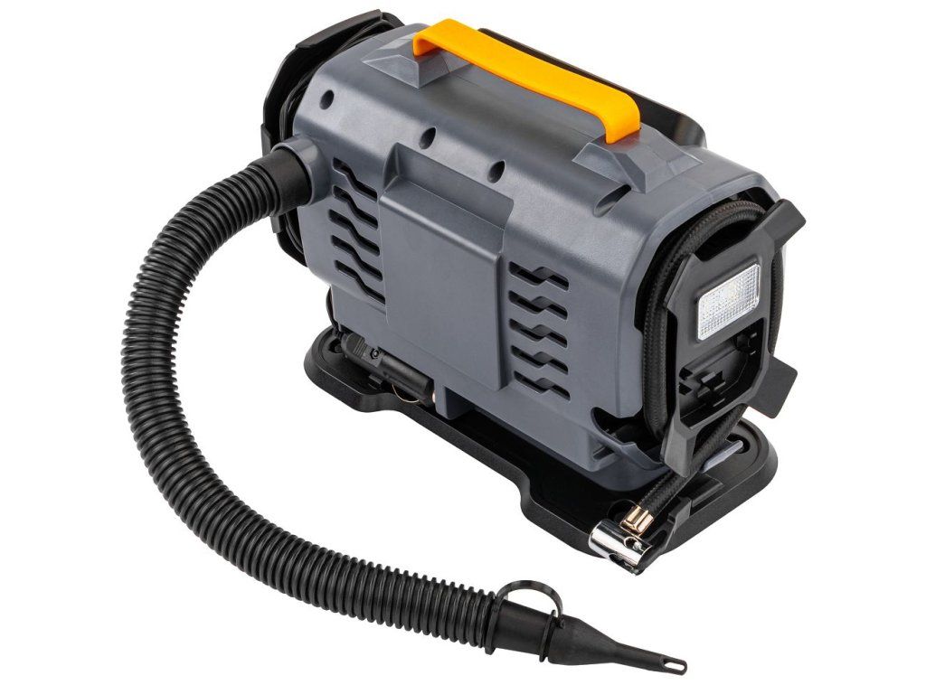 Kompresor nabízí výkon 120W a maximální tlak až 10 barů, což zajišťuje rychlé a efektivní pumpování.
