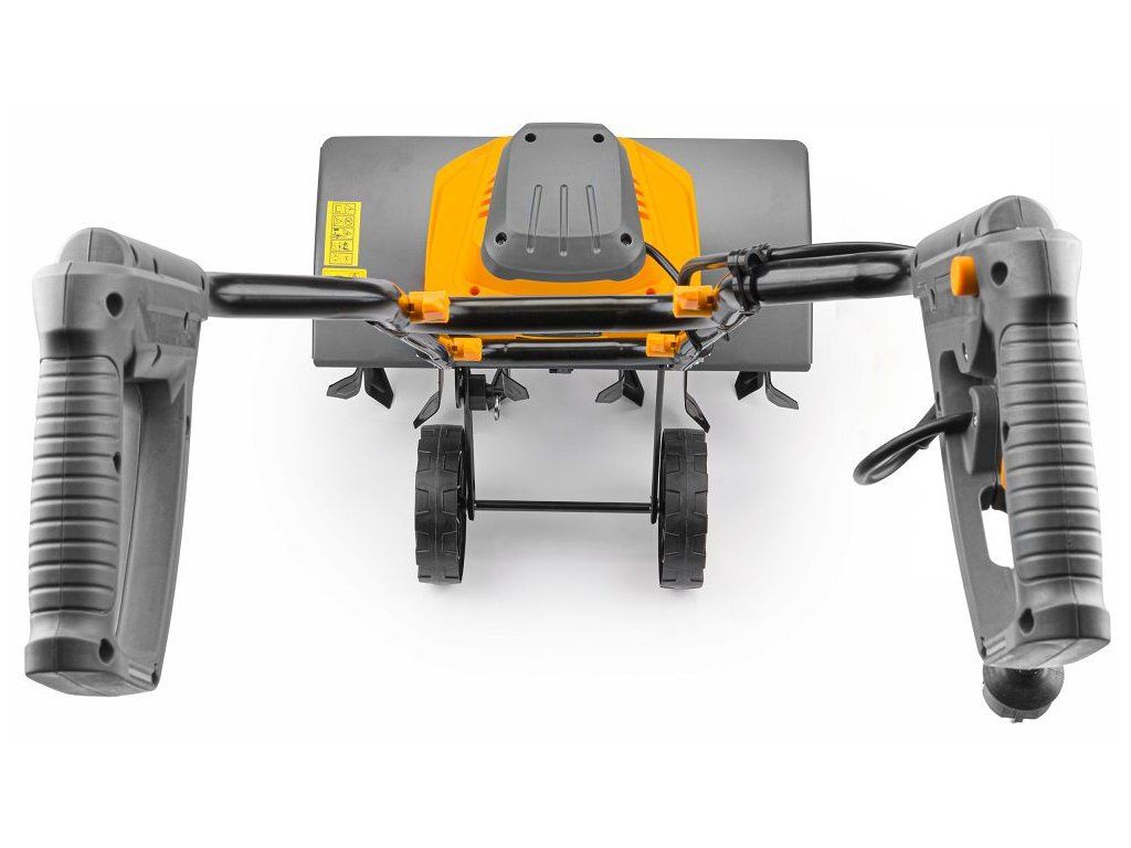 Elektrický motor s výkonem 2000 W zajišťuje dostatečnou sílu pro efektivní kultivaci půdy.