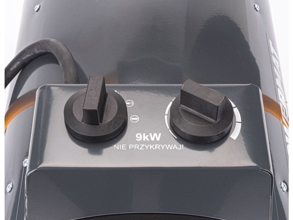 Ohřívač s výkonem 9000 W zajišťuje rychlé a efektivní vytápění i ve větších prostorách.