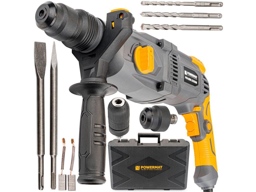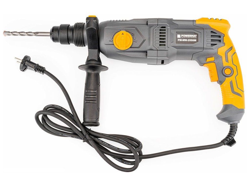 Elektrická vrtací kladivo POWERMAT s výkonem 2550 W je ideální pro náročné úkoly, jako je vrtání do betonu, kamene nebo kovu. Díky ergonomickému designu a vysokému výkonu je práce s ním efektivní a pohodlná.