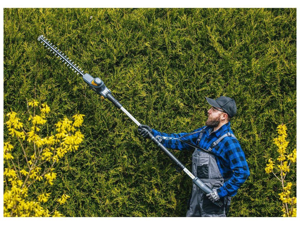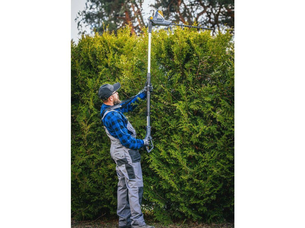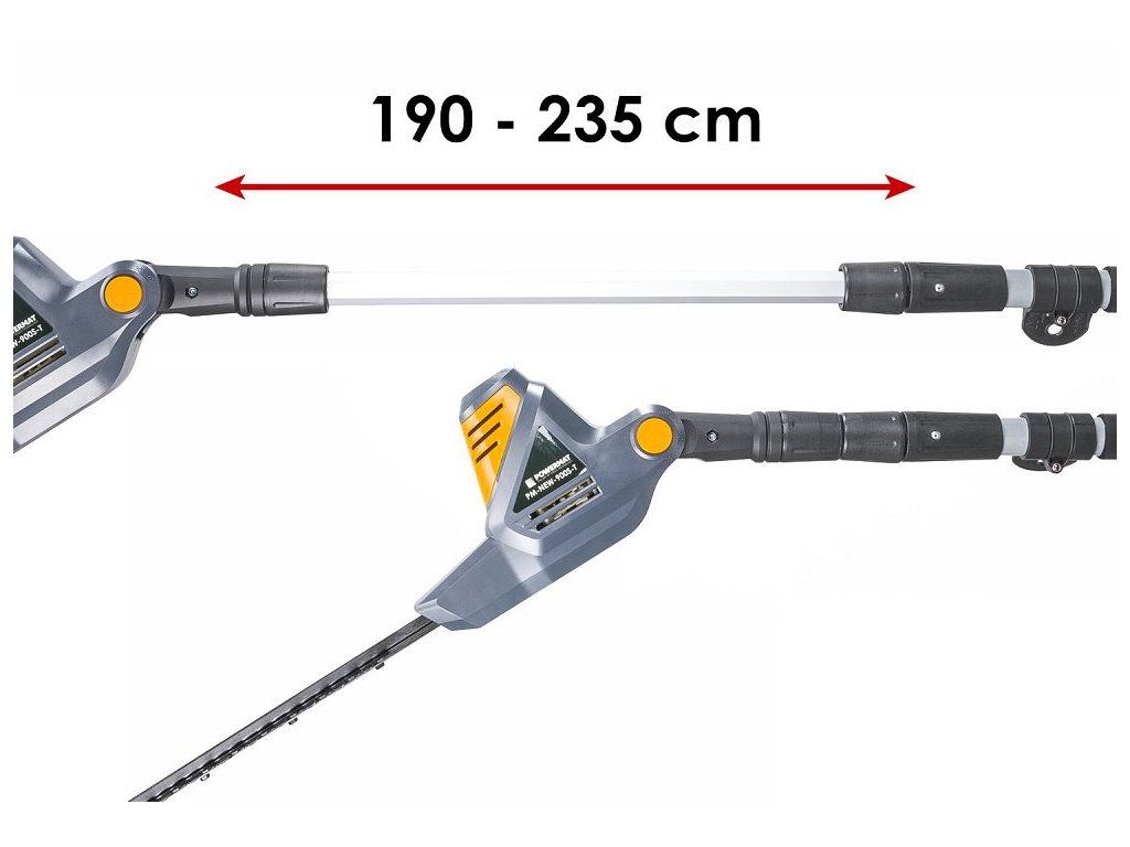 Nastavitelná délka od 1900 do 2350 mm umožňuje dosáhnout i na vyšší části živého plotu.