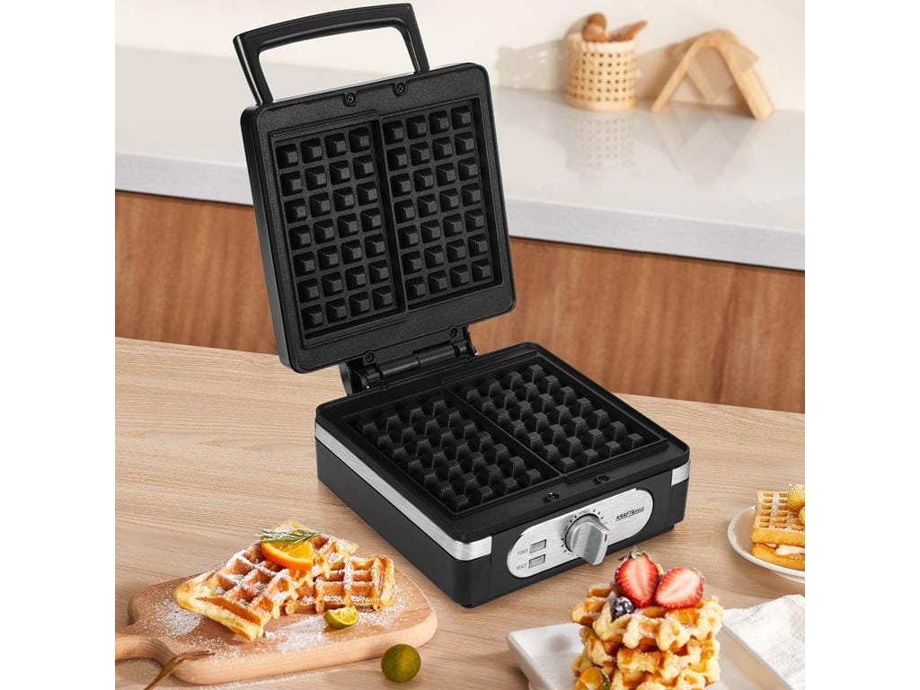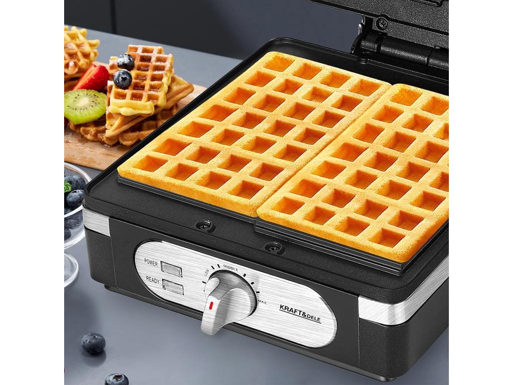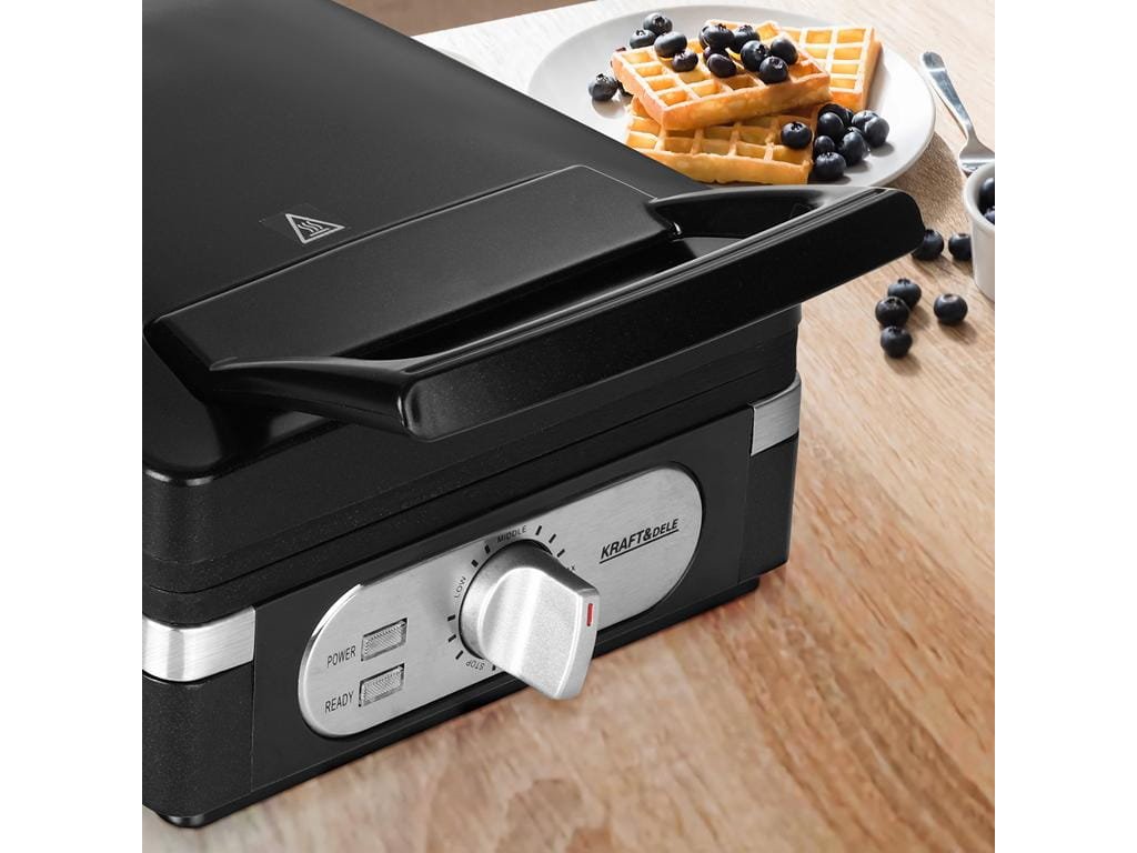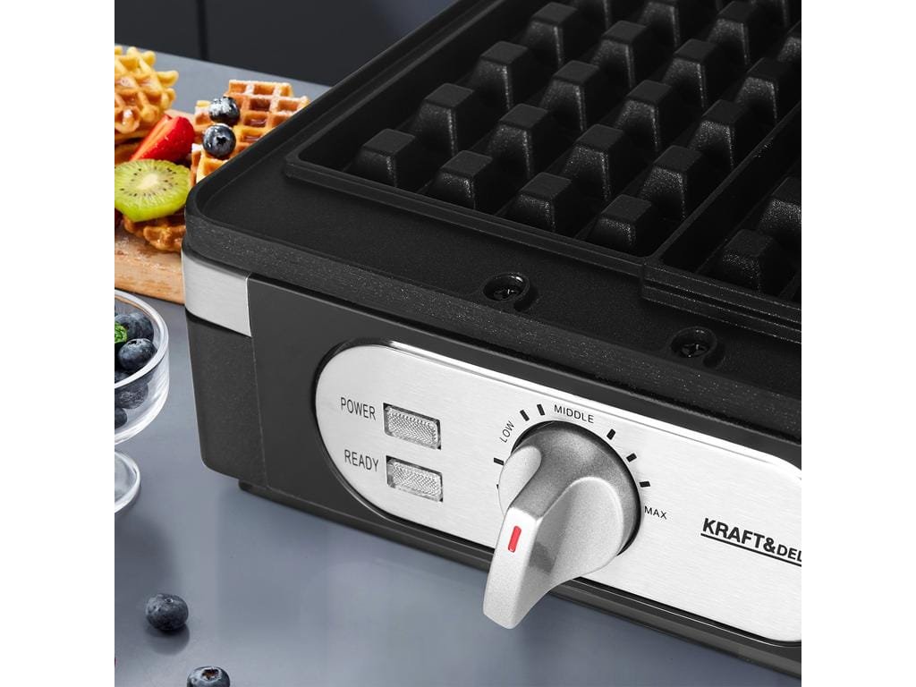 Užijte si gurmánské chvíle s Vaflovačem Kraft&Dele! Tento přístroj o výkonu 2000W vám rychle připraví křupavé vafle. Snadné ovládání a údržba dělají z vaflovače skvělého společníka pro každodenní požitky. 3 úrovně teploty zajistí ideální křupavost, zatímco univerzální napájení umožňuje použití kdekoliv. Perfektní doplněk pro vaši moderní kuchyni, se zárukou 12 měsíců.
