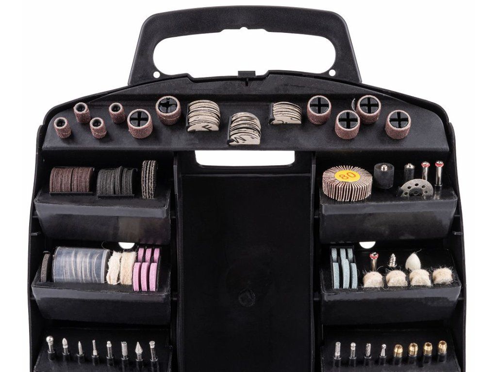 Obsahuje 300 různých koncovek pro různé aplikace, od broušení po gravírování.