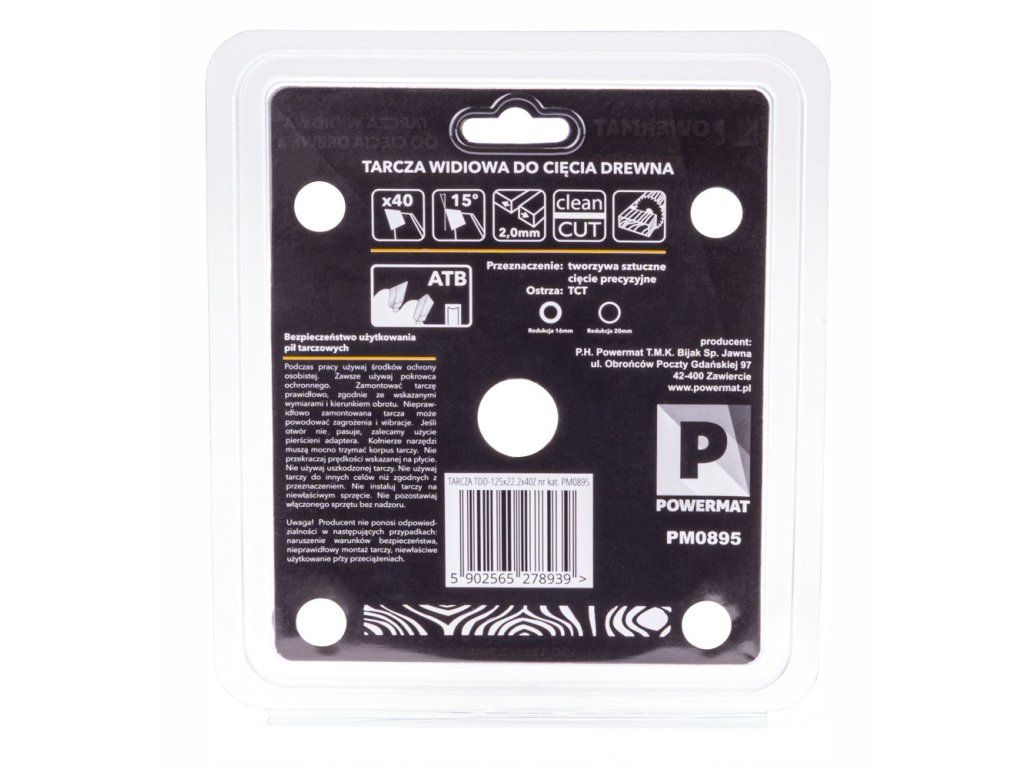 - Materiał zębów: TCT (TUNGSTEN CARBIDE TIPPED)