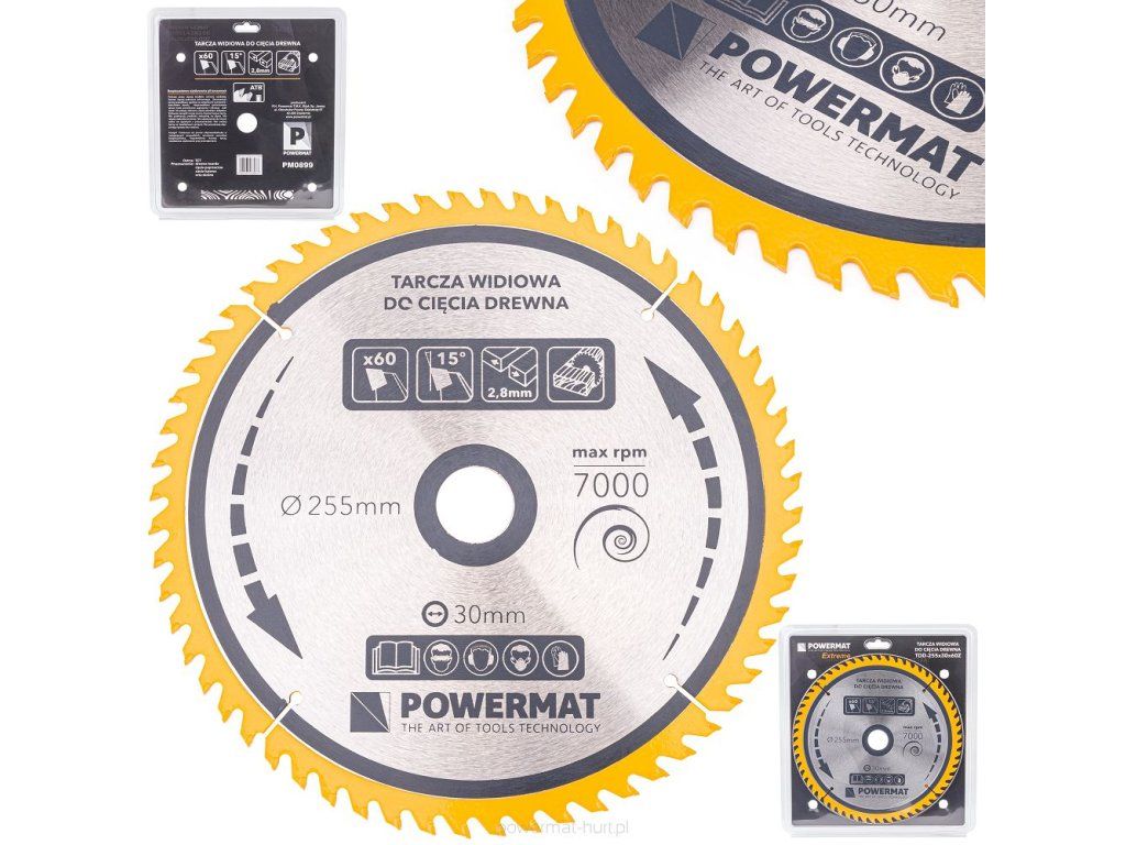 - Materiał zębów: TCT (TUNGSTEN CARBIDE TIPPED)