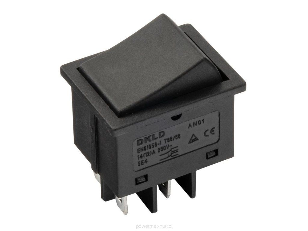 Přepínač funguje na principu tlačítka, které se vrací do původní polohy, což zajišťuje snadné a efektivní ovládání.
