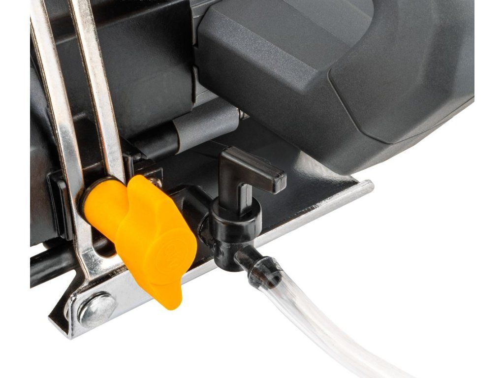 Řezačka je vybavena motorem o výkonu 1400 W, který zajišťuje rychlé a efektivní řezání dlažby.
