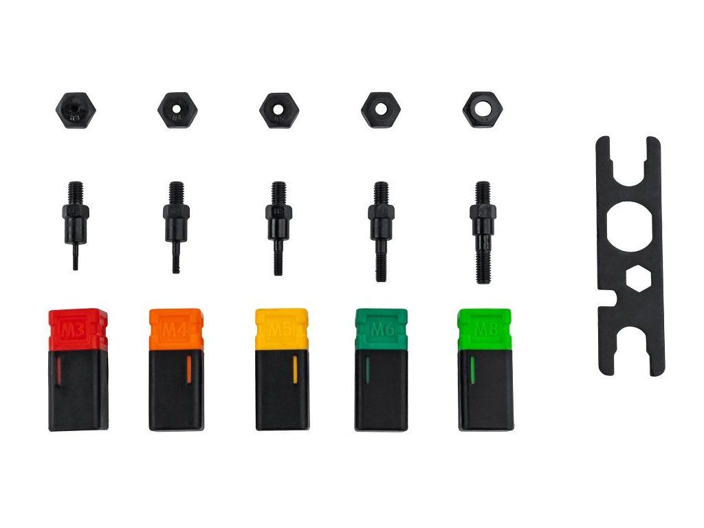 - Sada 4 výměnných koncovek typu M3, M4, M5, M6 a M8 s pouzdry