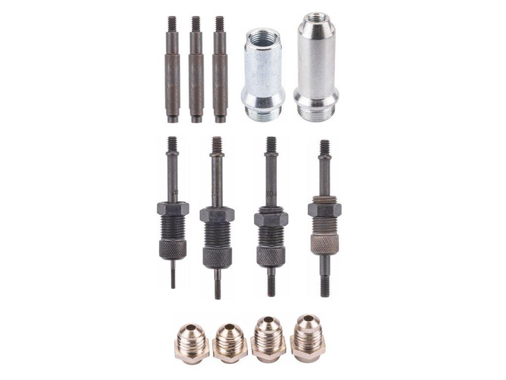 Obsahuje různé koncovky pro nýtování a nýtovací matice, což zvyšuje jeho univerzálnost.