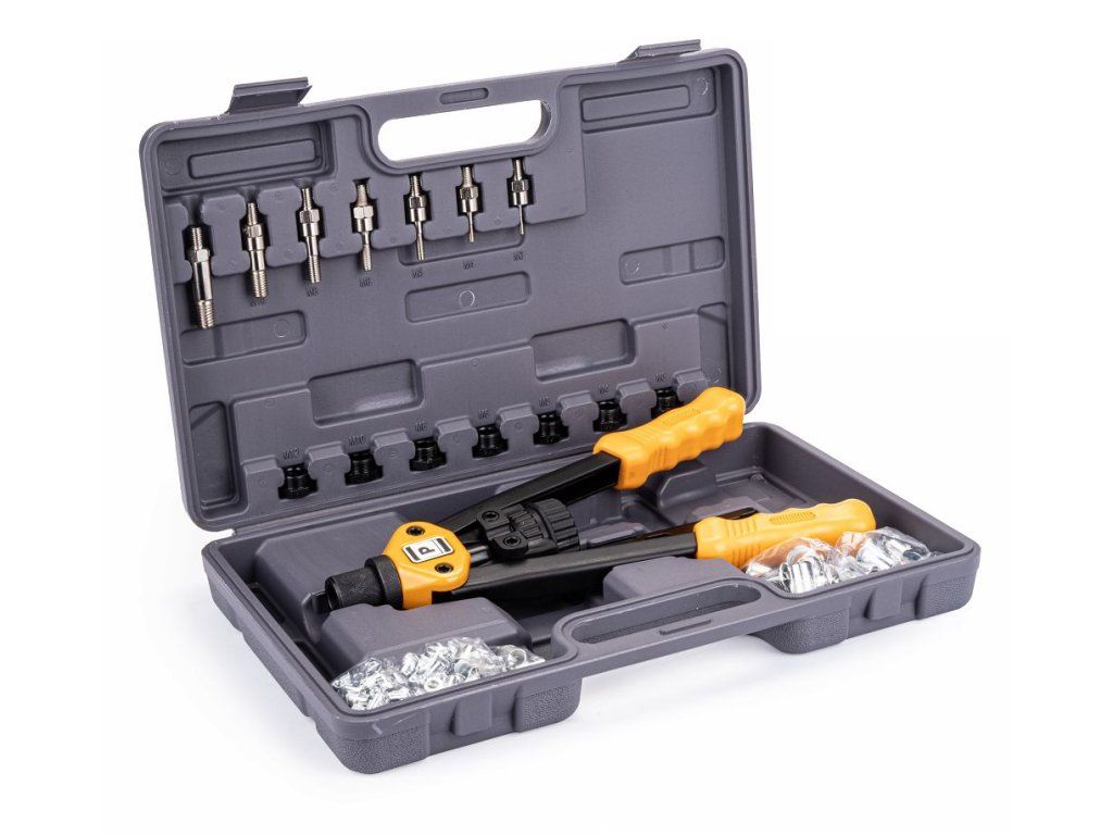 Součástí balení je transportní kufřík, klíč a sada nýtovacích matic pro okamžité použití.