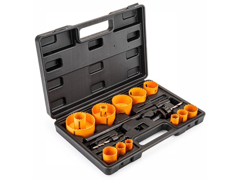 - 13 bimetalových děrovacích pil o průměrech: 19, 20, 22, 25, 29, 32, 35, 38, 44, 51, 57, 64, 76 mm