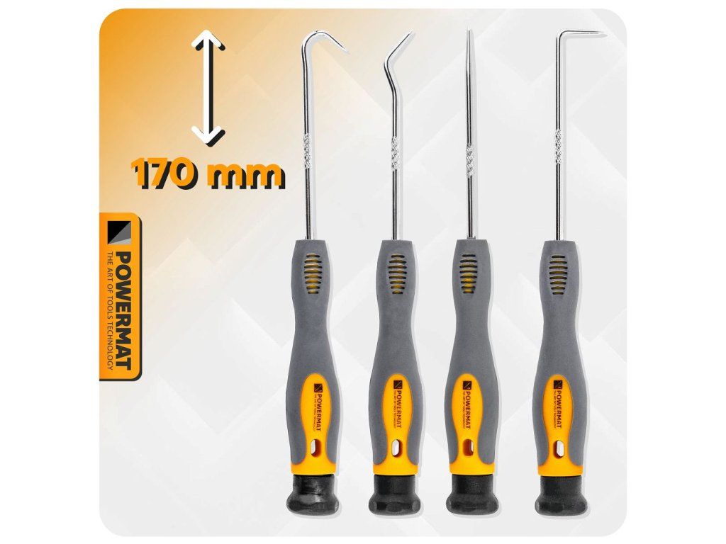 Objevte praktickou sadu háčků a bodců, která je ideální pro přesnou práci v omezených prostorech. Díky kvalitní oceli HRC 40 jsou háčky odolné a spolehlivé i při intenzivním používání. Ergonomická rukojeť zajišťuje pohodlné držení a snadnou manipulaci.