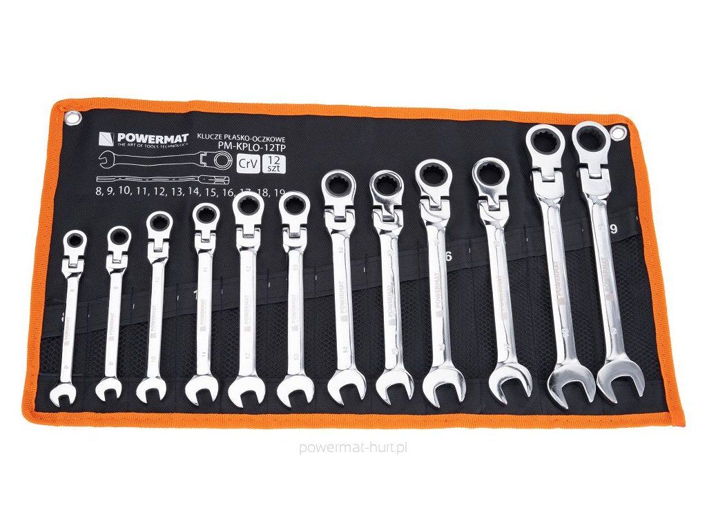 Sada klíčů plochých očkoplochých s ráčnou, kloubové, 8-19 mm, 12 ks