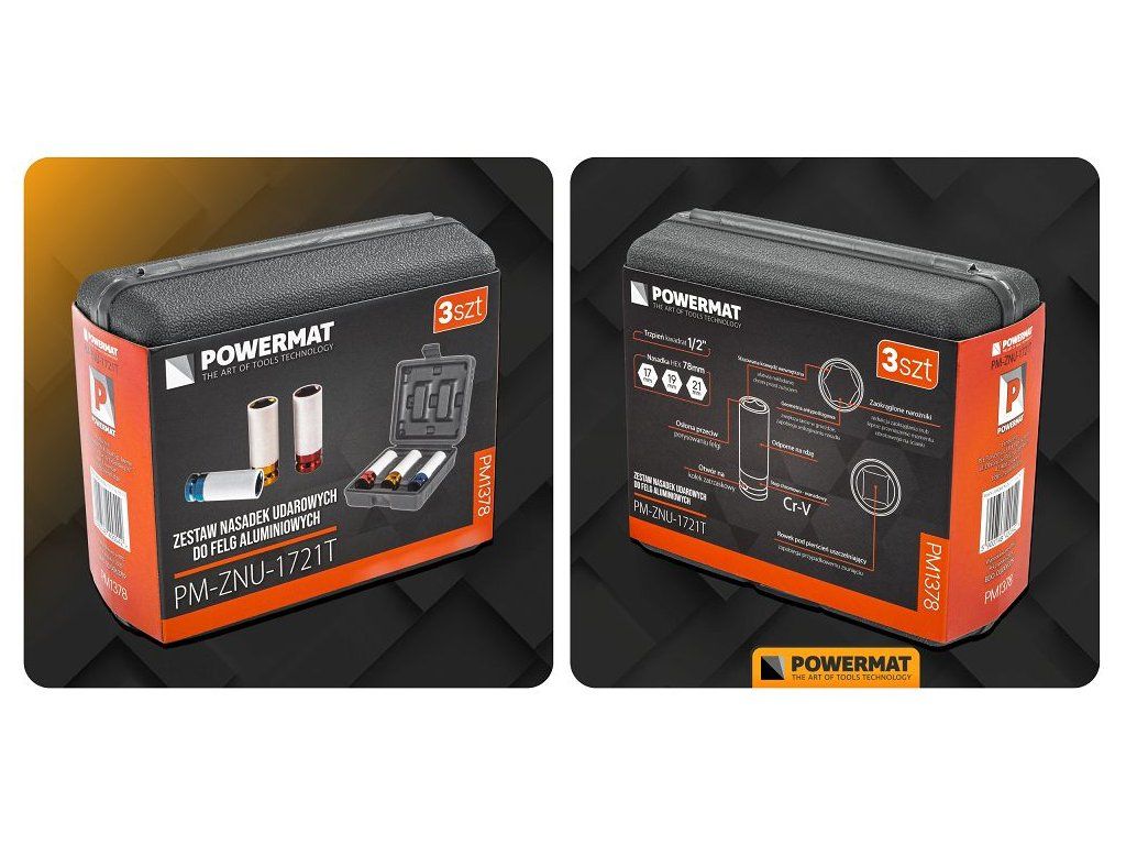 - Rozmiary nasadek: 17 mm, 19 mm, 21 mm