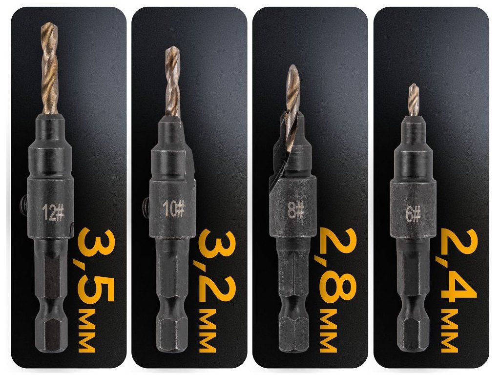 - Wiertło z pogłębiaczem - 4 szt. [3.5/3.2/2.8/2.4 mm]