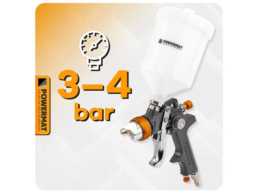 Stříkací pistole HVLP Powermat PM-PDM-170T je ideální volbou pro precizní lakování. Díky optimálnímu pracovnímu tlaku 3–4 barů dosáhnete skvělých výsledků při každém použití. Je vybavena technologií HVLP, která zajišťuje efektivní nanášení barvy s minimální ztrátou.