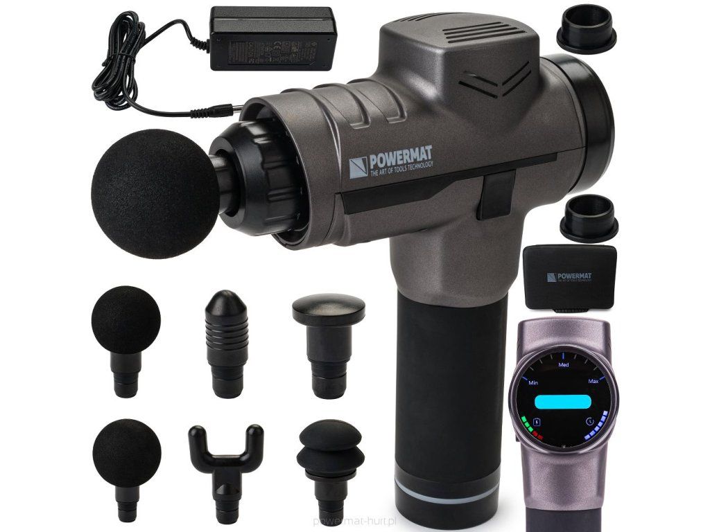 Vibrační masážní pistole Powermat PM-MAS-1800SLM s 6 nástavci