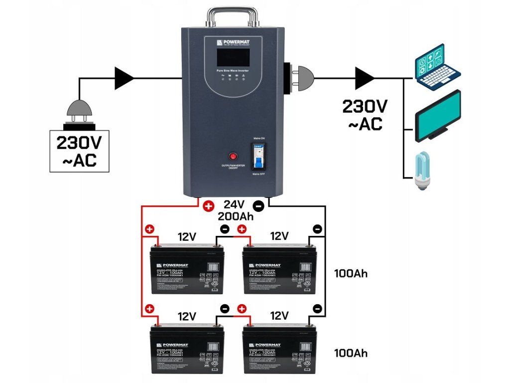 - Obsługiwane typy akumulatorów: 24V - AGM VRLA i GEL
