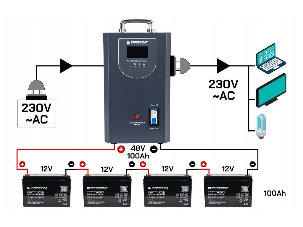 - Jaký je maximální výkon UPS? 5000VA / 4000W.