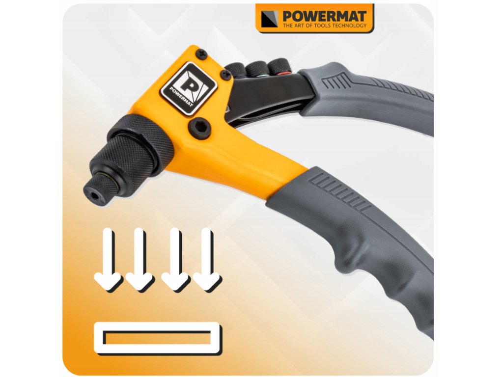 Tato ruční boční nýtovačka je navržena pro snadné a rychlé spojování materiálů pomocí trhacích nýtů. Krátké provedení nástroje je ideální pro práci v těsných a hůře dostupných místech, kde klasické nýtovací kleště nevyhovují.