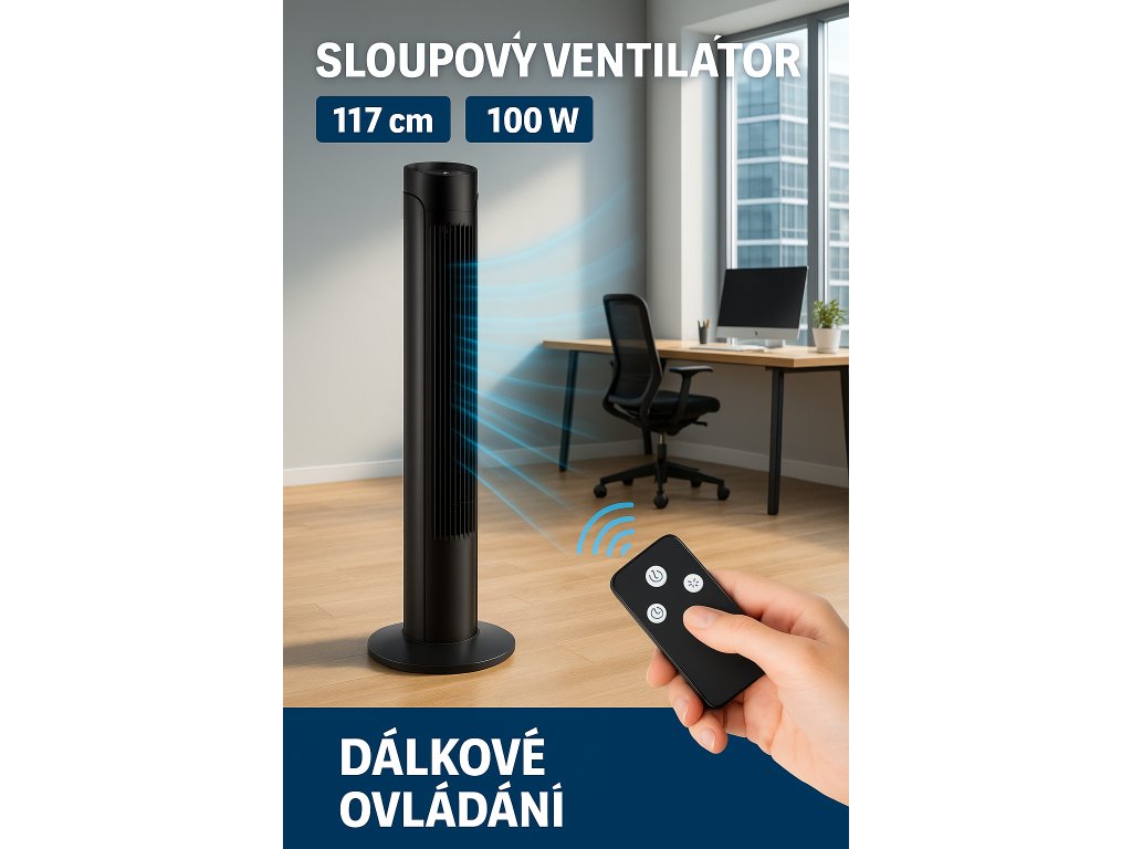 - 🌀 Sloupový ventilátor Ondragon 117 cm / 100 W – silný, tichý a dálkově ovládaný