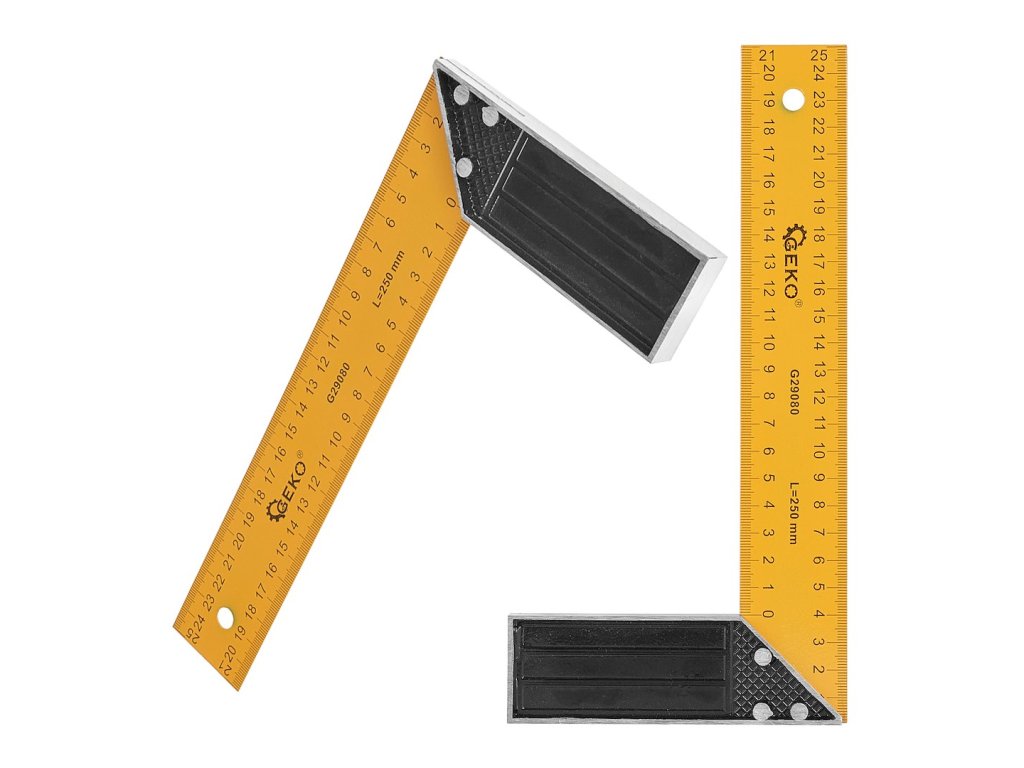 Stavební úhelník 250 mm je nenahraditelným nástrojem v dílně kutilů, truhlářů nebo stavbařů. Umožňuje rychlé a přesné určování pravých úhlů a řezacích čar, díky čemuž se skvěle hodí při řezání prken, panelů, sádrokartonových desek, lišt nebo konstrukčních prvků. Ideální pro tesařské, stavební a renovační práce a všude tam, kde záleží na přesnosti a opakovatelnosti rozměrů.