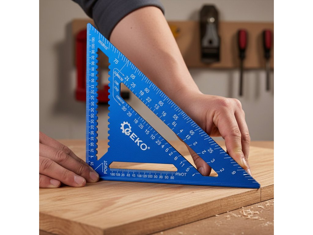 Tesařský úhelník vyrobený z vysoce kvalitního hliníku zajišťuje přesnost měření a pohodlí při tesařských, stavebních a dokončovacích pracích.