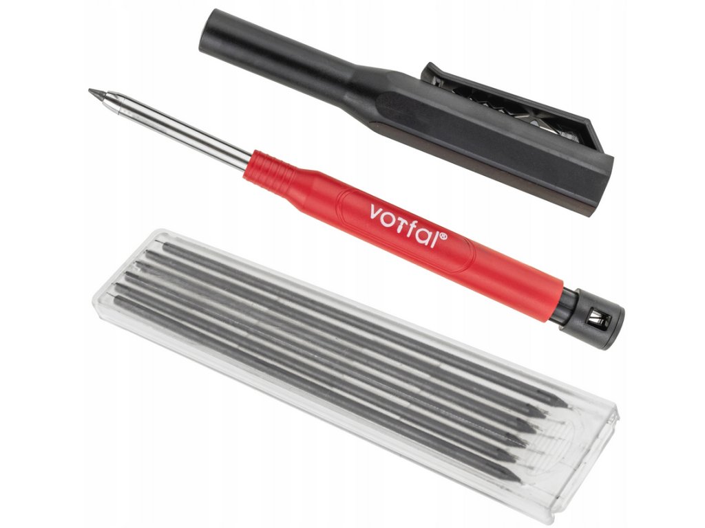 Automatická tesařská a technická tužka s dlouhými náplněmi 150 mm je ideálním pomocníkem pro řemeslníky i kutily. Zajistí čisté a přesné linie na dřevě, sádrokartonu, kovu či kameni – i na nerovných plochách, kde běžné tužky selhávají.