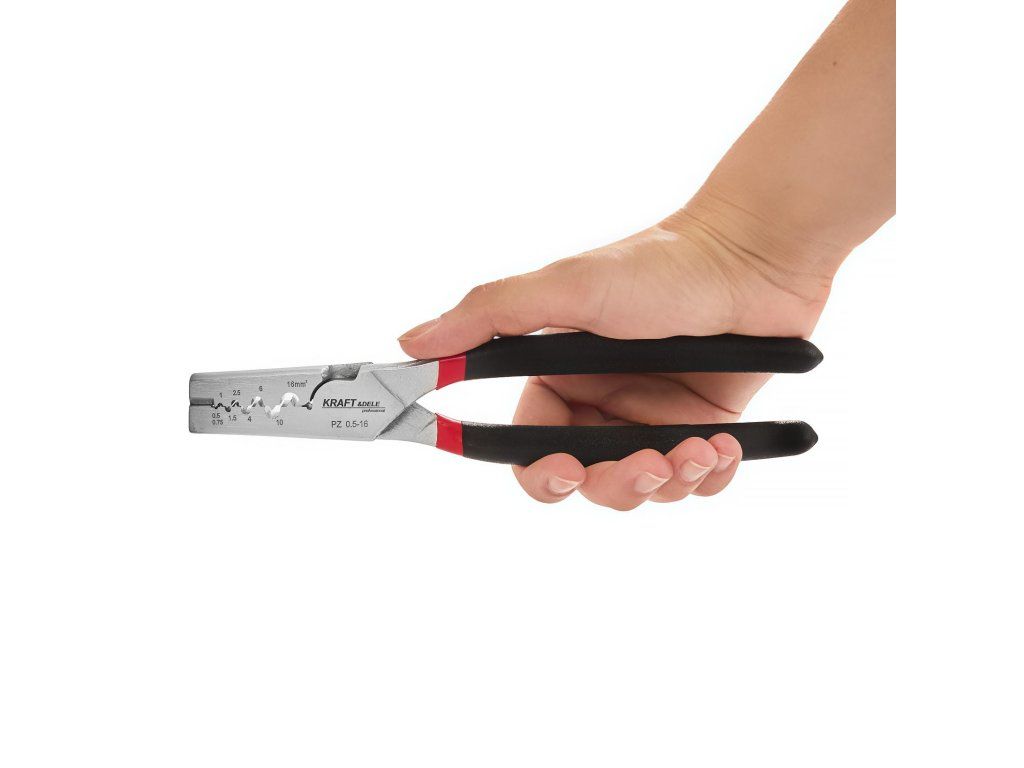Kleště jsou optimalizovány pro spolehlivé a bezpečné lisování různých typů kabelových objímek bez námahy.