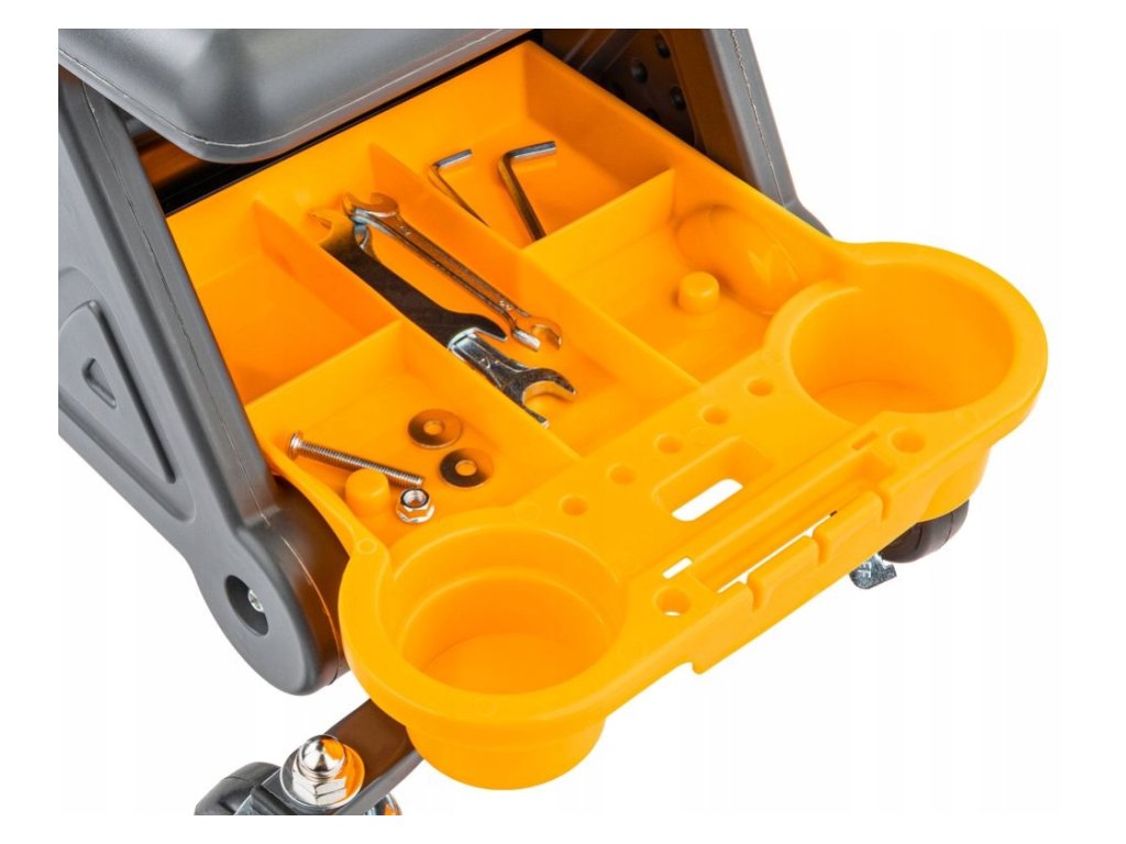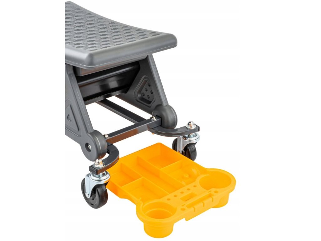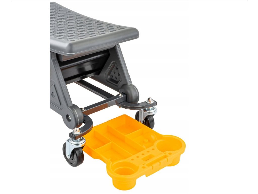 Díky kolečkům s brzdami se snadno přesuneš tam, kde potřebuješ – a pak ho bezpečně zafixuješ na místě. Navíc má 3 praktické tacky, takže nářadí, šroubky i drobné díly máš pořád po ruce. 🔧