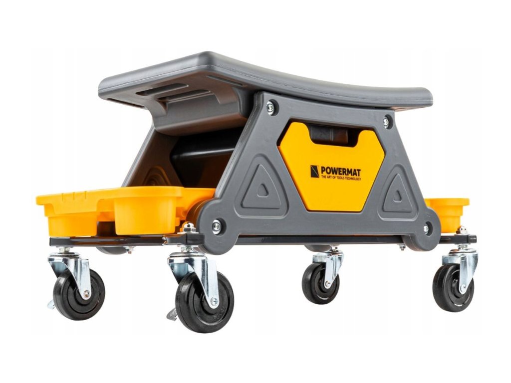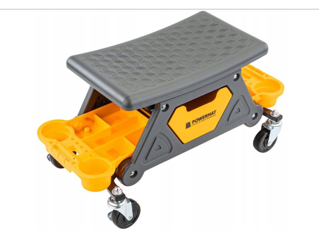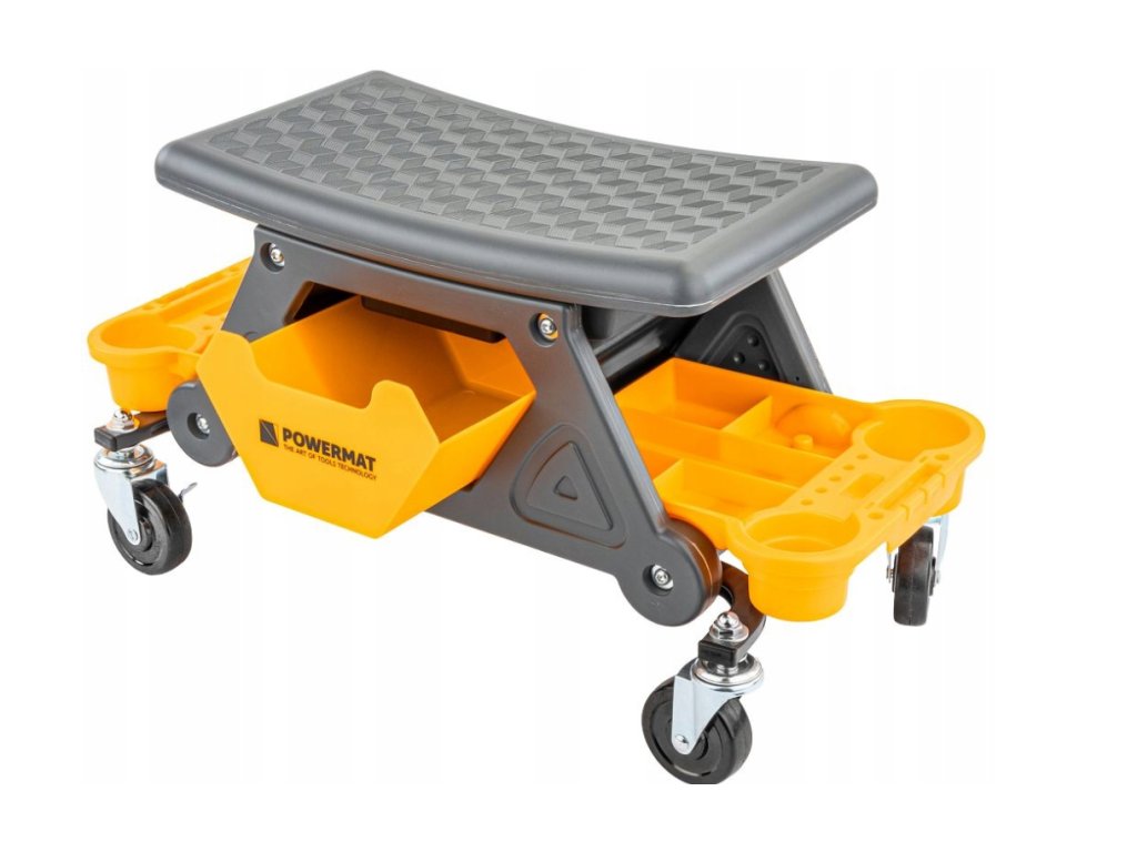 🛠️ Mobilní dílenské sedátko na kolečkách s brzdami a tackami na nářadí
