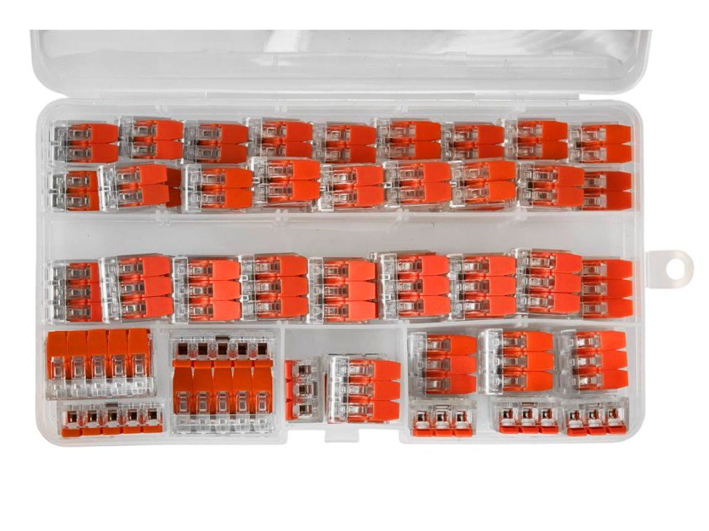 S našimi szybkozłączkami už žádný chaos v kabelech! Ideální řešení pro profesionály i domácí mistry. Baleno v praktickém průhledném boxu pro snadné použití a organizaci. Kraft&Dele zaručují kvalitu a spolehlivost. Objednejte a přidejte do svého nářadí sadu 55 ks pro různé velikosti drátů. Perfektní pro elektroinstalační projekty – jednoduché, praktické, spolehlivé!